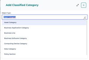Asset category object type is generic enough to be used on different object types. There are more specific object types, such as software technology category, business application category.