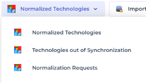 Requests for normalization are displayed in the Normalization requests list. Once normalization has been done, the corresponding technologies are visible in the global list of technologies in your repository.