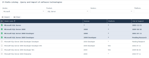 • Normalized Technologies: all versions imported from IT-Pedia (versions present in the IT-Pedia My Products list)