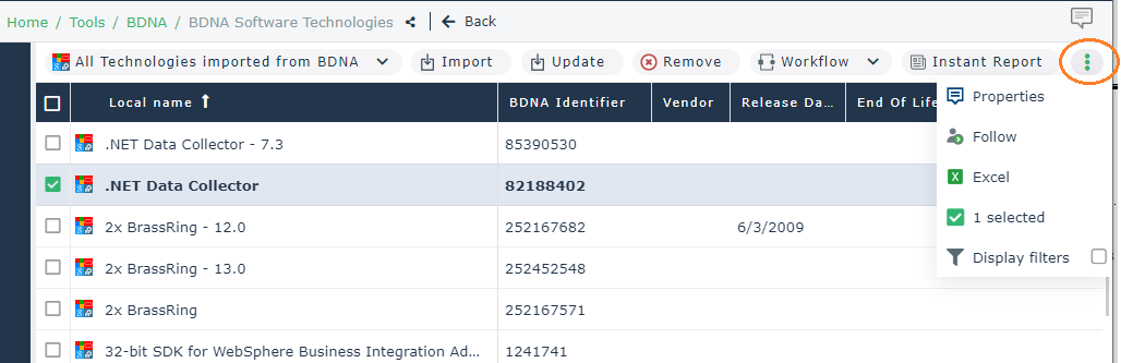 1. Click the Tools > Technopedia > BDNA Vendors menu.