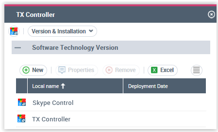 Once the technologies are merged, the existing technology, "Skype control", is kept in your repository. In its properties you can see the ID as well as the BDNA Name of the technology to which it corresponds: "TX Controller V1.15".