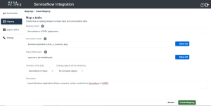 • Any application created or updated in ServiceNow is mirrored in HOPEX and vice versa.