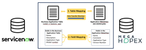 1. The objects to synchronize between HOPEX and ServiceNow (e.g. Applications) through a Mapping of tables.