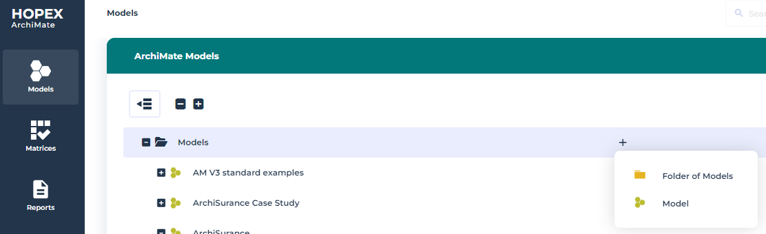 The Models are represented in a hierarchical tree and can be classified in Folder of Model.
