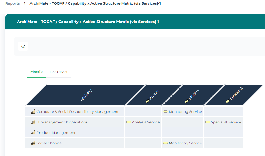 3. Select the Report Template "ArchiMate - TOGAF® / ArchiMate Capability X Active Structure Matrix (via Services)".