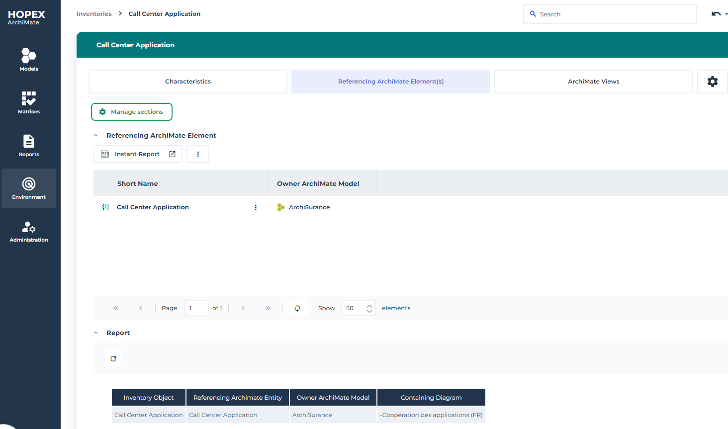 ArchiMate® concepts are mapped with Hopex EA building blocks enabling compatibility and continuity with other models. Thus, an ArchiMate Business Process can reference a Process which can be described in a BPMN diagram, so that the user can navigate from an overview ArchiMate diagram putting a process into its EA context, to a more detailed BPMN description.