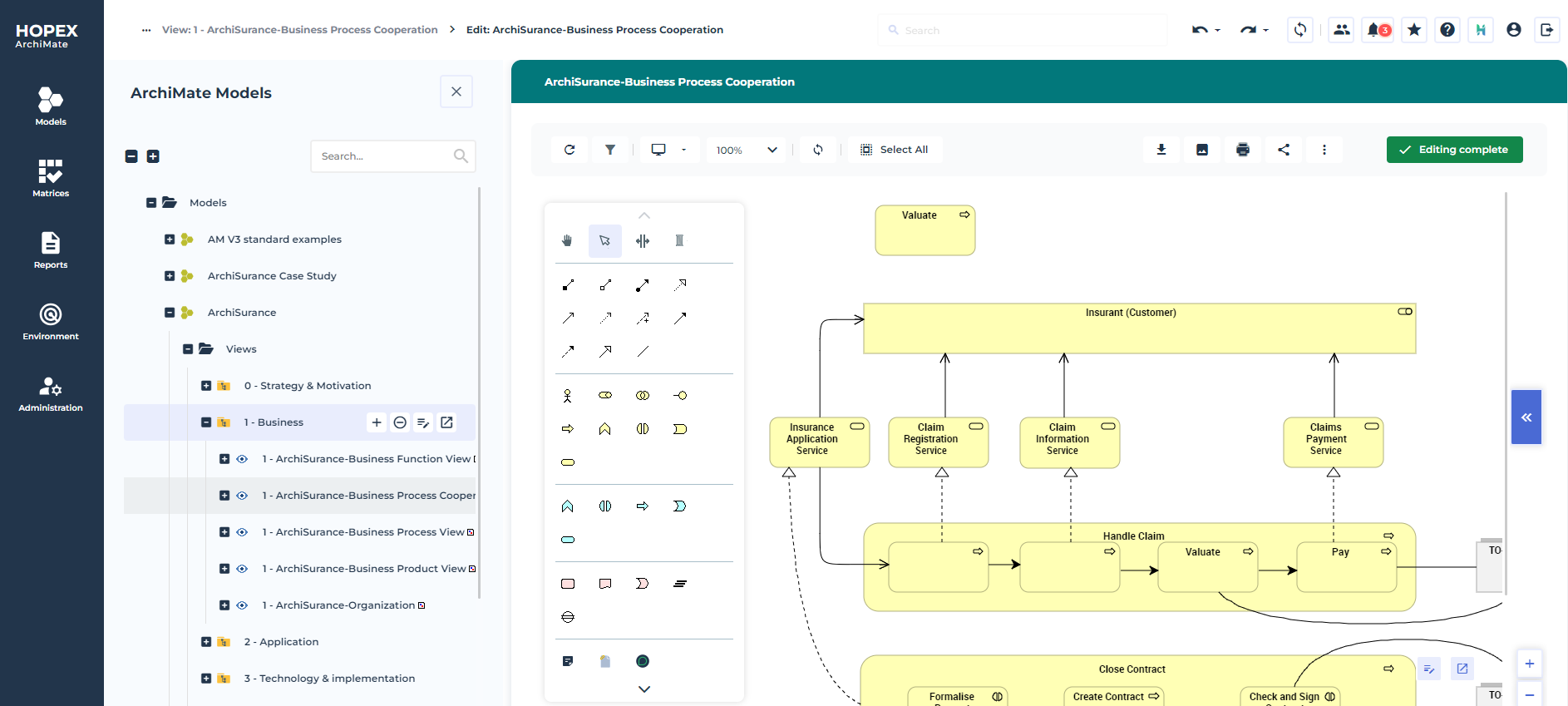 *For more information on an ArchiMate® model creation, see Starting with Hopex for the ArchiMate® Framework.