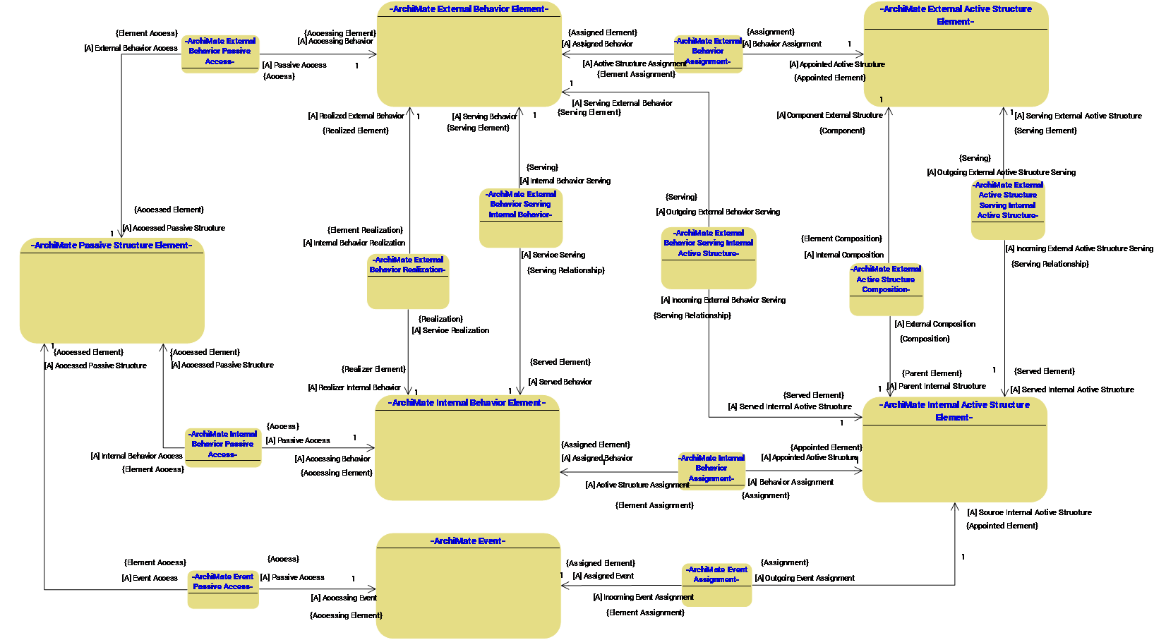 The generic MetaModel serves as a pattern for all the Core Layers MetaModels. It helps identifying the Passive / Behavior / Active elements and provides abstractions for the relationships defined as part of the ArchiMate® generic MetaModel.