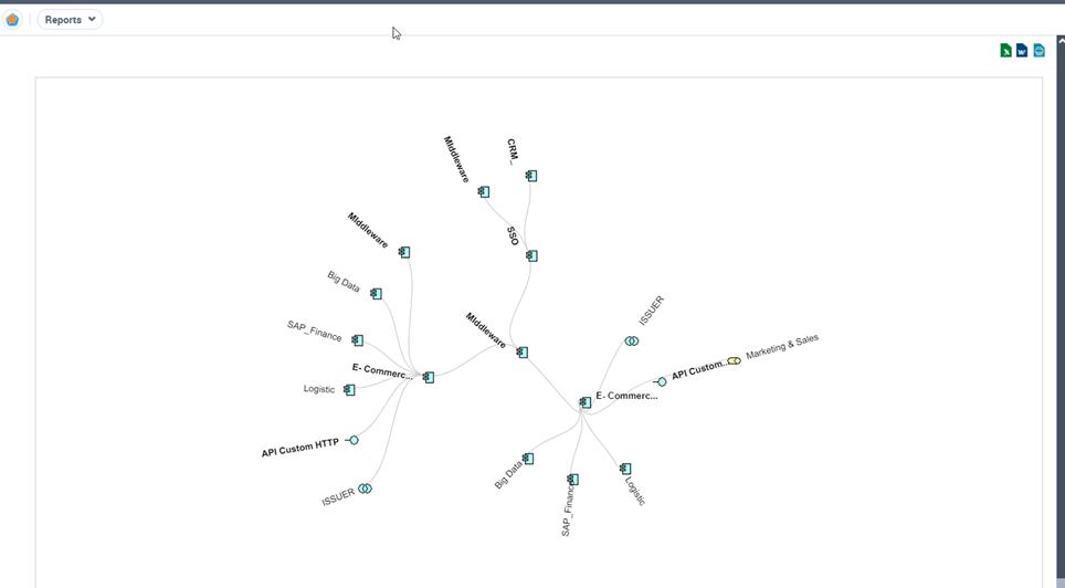 The dendrogram report template can be used to visualize the relationships to and from an object, at a defined depth.