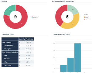 The lead auditor can access an analysis report on strengths and weaknesses derived from audit findings and recommendations.
