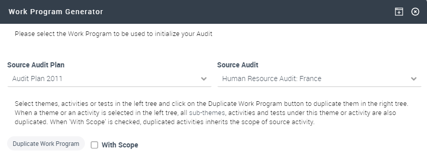 3. Select the themes, activities or workpapers and click Duplicate to duplicate them in the Target Audit.