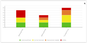 This widget shows evolution over time (by audit plan) of audit breakdown by audit category: