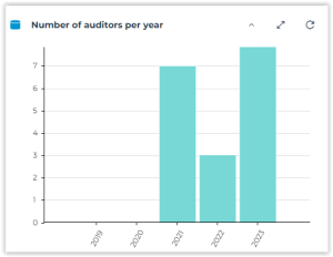 This widget shows evolution over time (by audit plan) of evaluations assigned to audits: