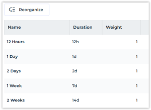 You can weight each downtime period. Each weight is used by the algorithm to compute the RTO (Recovery Time Objective) and business impact.