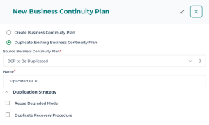 4. Click Duplicate a Business Continuity Plan.