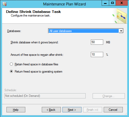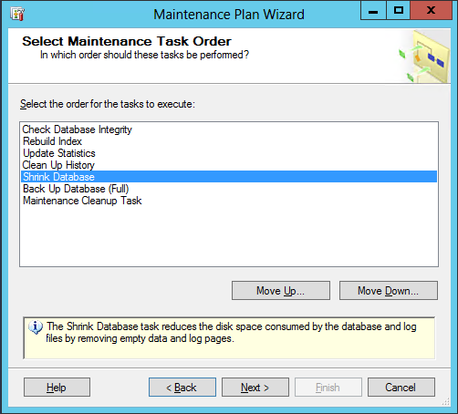 13. Click Finish to create the maintenance plan, and the SQL Server job: