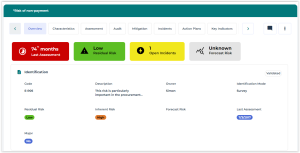 • Residual Risk: average of the net risk obtained from the last assessment session. All the contexts for which the risk was assessed during the last assessment session are considered (e.g. entities, processes, applications…) and the average is computed.