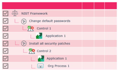 Controls are to be selected in the following tree: Regulatory Framework > Control directive > Context (application or process) > Control