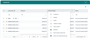 The result list displays the amounts corresponding to your filter.