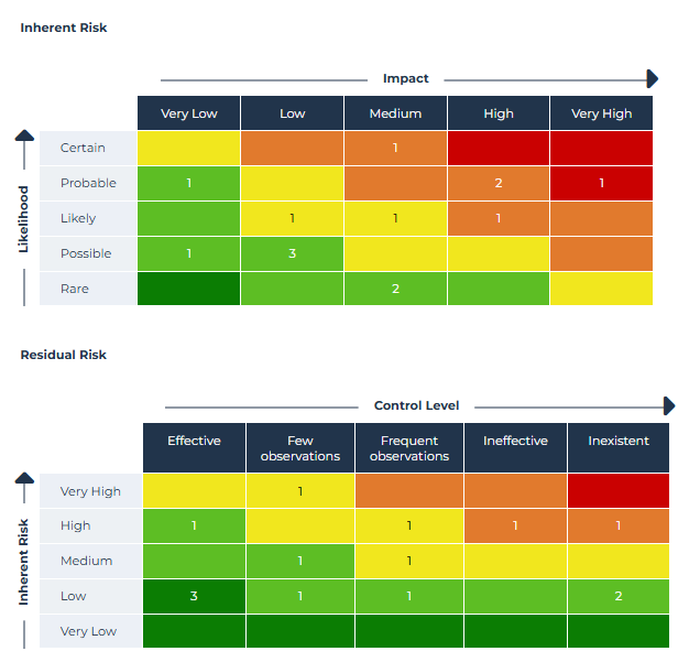This report inventories risks incurred by a set of processes as well as the controls implemented. It presents, in the form of a matrix, distribution of risks and controls associated with a list of processes in relation to these criteria.