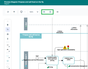 3. To complete the process diagram, add existing or new objects into the frame, using the following icons: