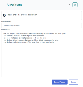 You can also create a Process diagram from the homepage > Quick Access > Actions tab > Create a process diagram using AI Assistant.