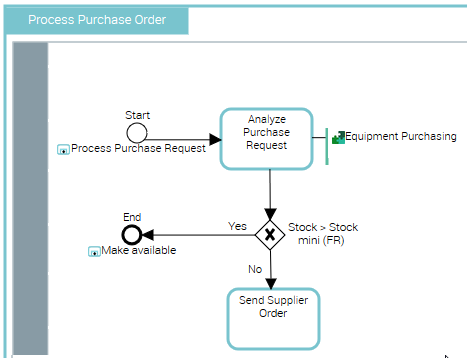To analyze the purchase request and send the order, the purchasing assistant requires data on stock levels. He will have access to the "Equipment Purchasing" application.