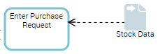 In this example, the shared object "Stock Data" is represented with an open head arrow since it is used by the "Analyze Purchase Request" process without having been produced by one of the processes represented in the repository.
