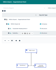 • Graphical mode: this mode is rather recommended if you need more precision in adding or modifying objects in the Organizational Chart.