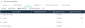 A criterion is a reference element used to compare initiatives in a portfolio. Criterion values can be predefined.
