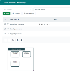When you create a Process Category, it appears in the table (upper part of the screen) and in the diagram preview (bottom part of the screen).