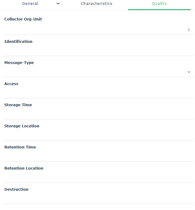 The other fields allow you to enter additional indications for messages of “Quality record” type that are particularly important in documentation of your quality system. Here you can define the controls needed for identification, storage, retention time, etc.