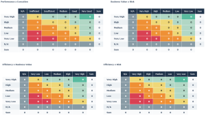• Performance: this characteristic is a global assessment of process performance. It is calculated from assessment of process business value, effectiveness and risk.