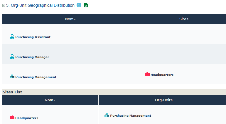 This report details the organizational structure, the responsibilities and the sites associated to the org-units specified as parameters.