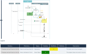 It enables to easily see the updated objects between two process revisions - such as operations, processes, gateways, shared objects and org-units.