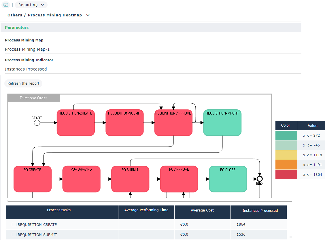 The Process Mining Heatmap report is generated.