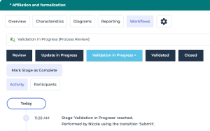 The Process Designer receives a request for change via an email notification. The process (and its related diagram, description and components) is unlocked: it is possible to edit the process.