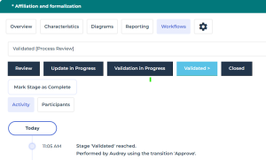 The Process Designer receives a request for change via an email notification. The process (and its related diagram, description, etc.) is unlocked: it is possible to edit the process.