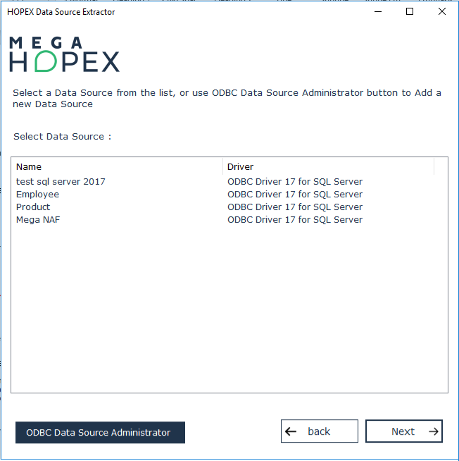 For data extraction, it is necessary to define an ODBC data source with the ODBC Data Source Administrator tool: