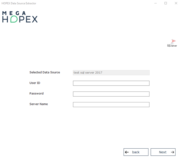 1. Run the HOPEX Data Source Extractor utility (in the directory indicated when downloading the module).