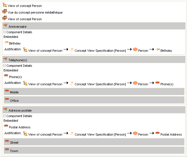 A concept view enables representation of the semantic scope covered by a business object. A concept view is based on the selection of several concepts specific to the view.