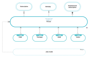 For example, "John Smith" is a "Person" who can pass form one state to another on his birthday.