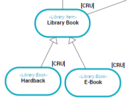 For example, the "Library Book" concept is broken down into "Hardback" and "E-Book". These two book types inherit the links at the level of the "Library Book" concept.