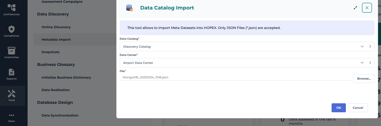 After a first initialization of metadata in HOPEX, it is possible to make other imports from the same source. In this case, only new objects and property updates are taken into account (example: creation of a new meta dataset, new meta field).