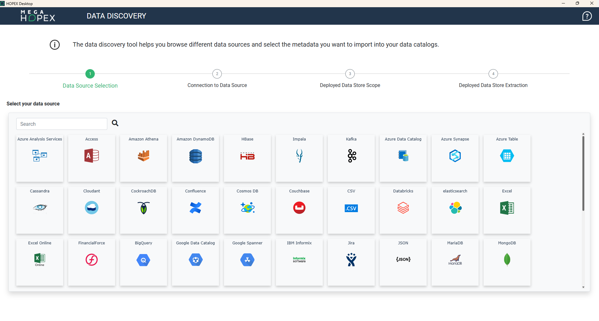2. After opening the HOPEX Data Discovery tab, check that all connectors have been loaded.