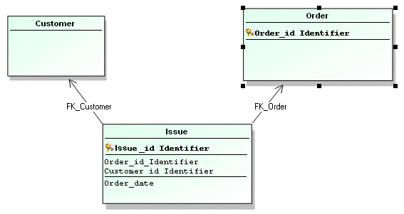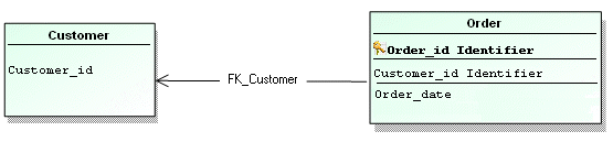 • A column corresponding to the key for the “Customer” entity is created in the “Order” table.