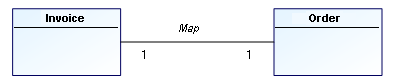 A constraint association (one of its maximum multiplicities is 1) does not result in a table. In the following example, an order has only one customer.