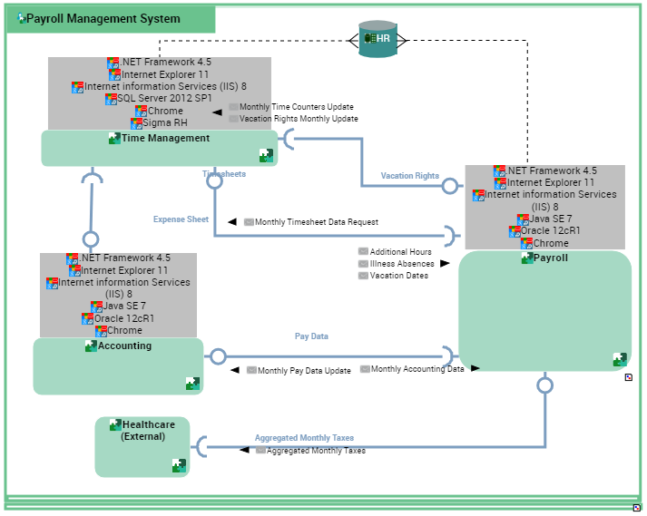 Provides access to the list of system components described in the various diagrams as well as the communications between them.