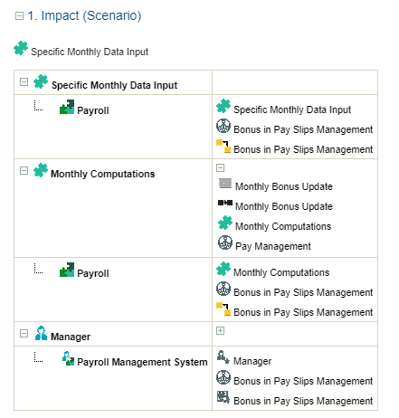 Used to analyze the impact of a failure of a system on the application systems that use it or the other systems or application systems as described in its structure diagrams that use the system.