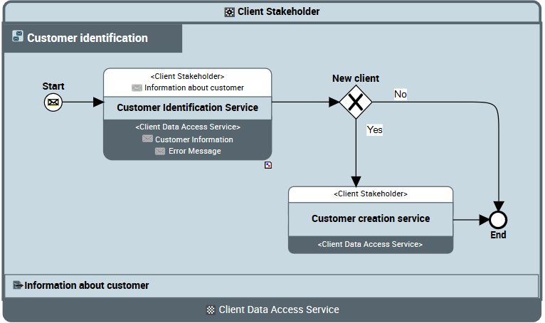 The service interface diagram associated with the “customer identification protocol ” describes in BPMN formalism the operations executed.